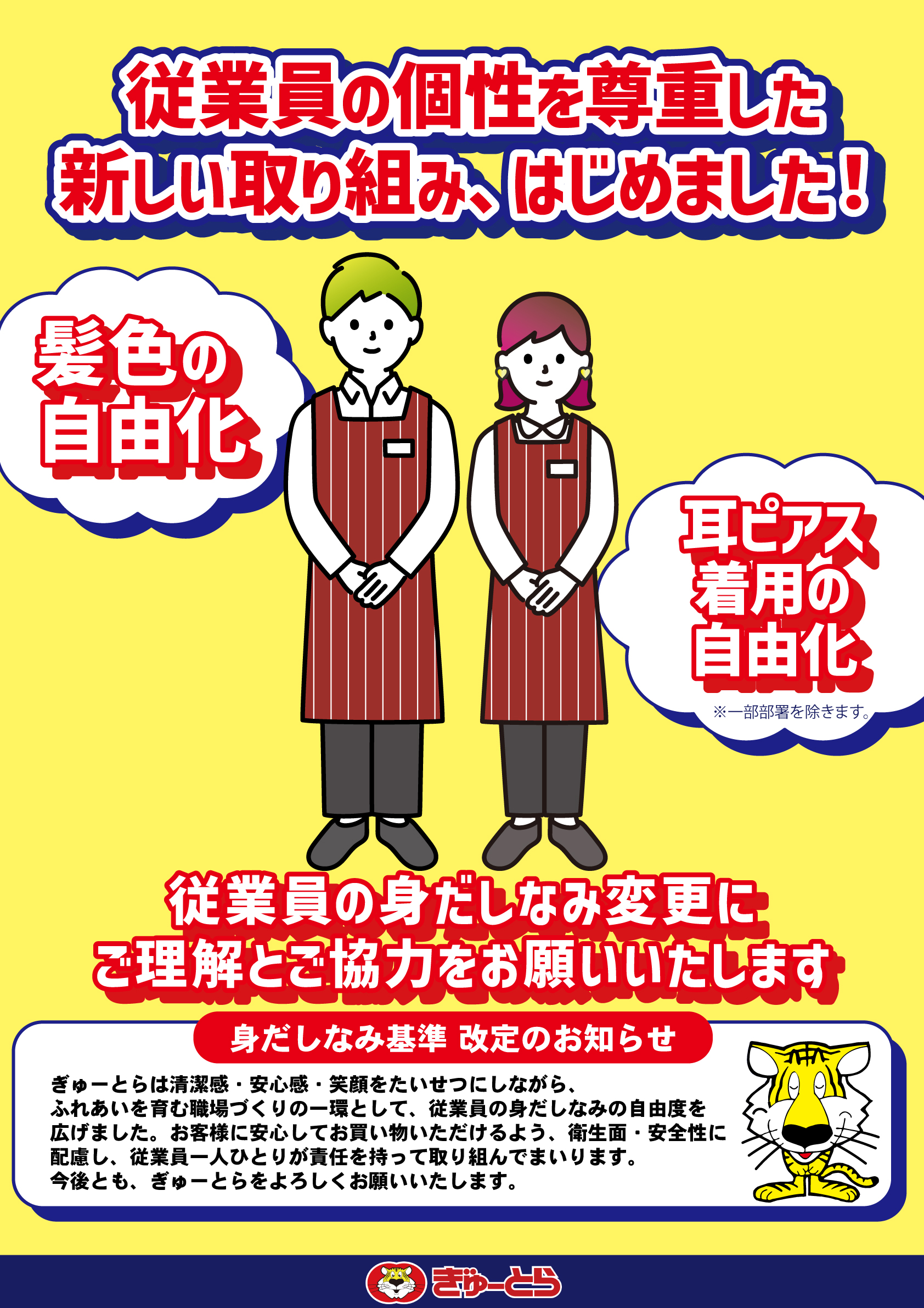 このたび、従業員の身だしなみ基準について、一部改定させていただきました。