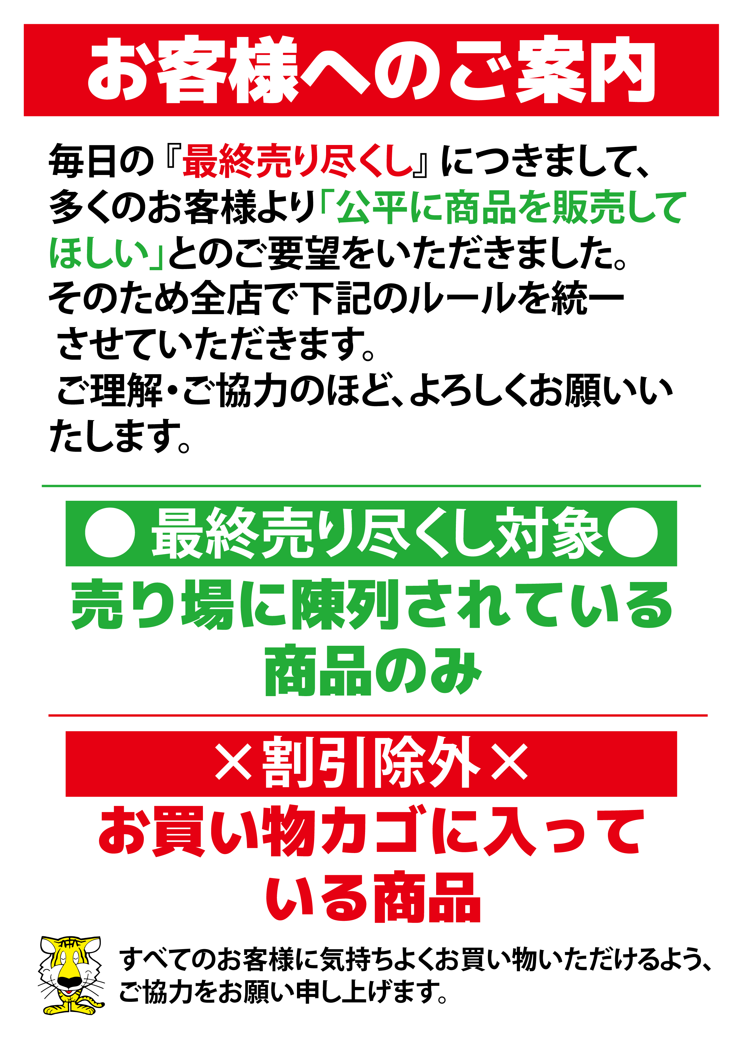 お知らせ 売り尽くしに関するご案内
