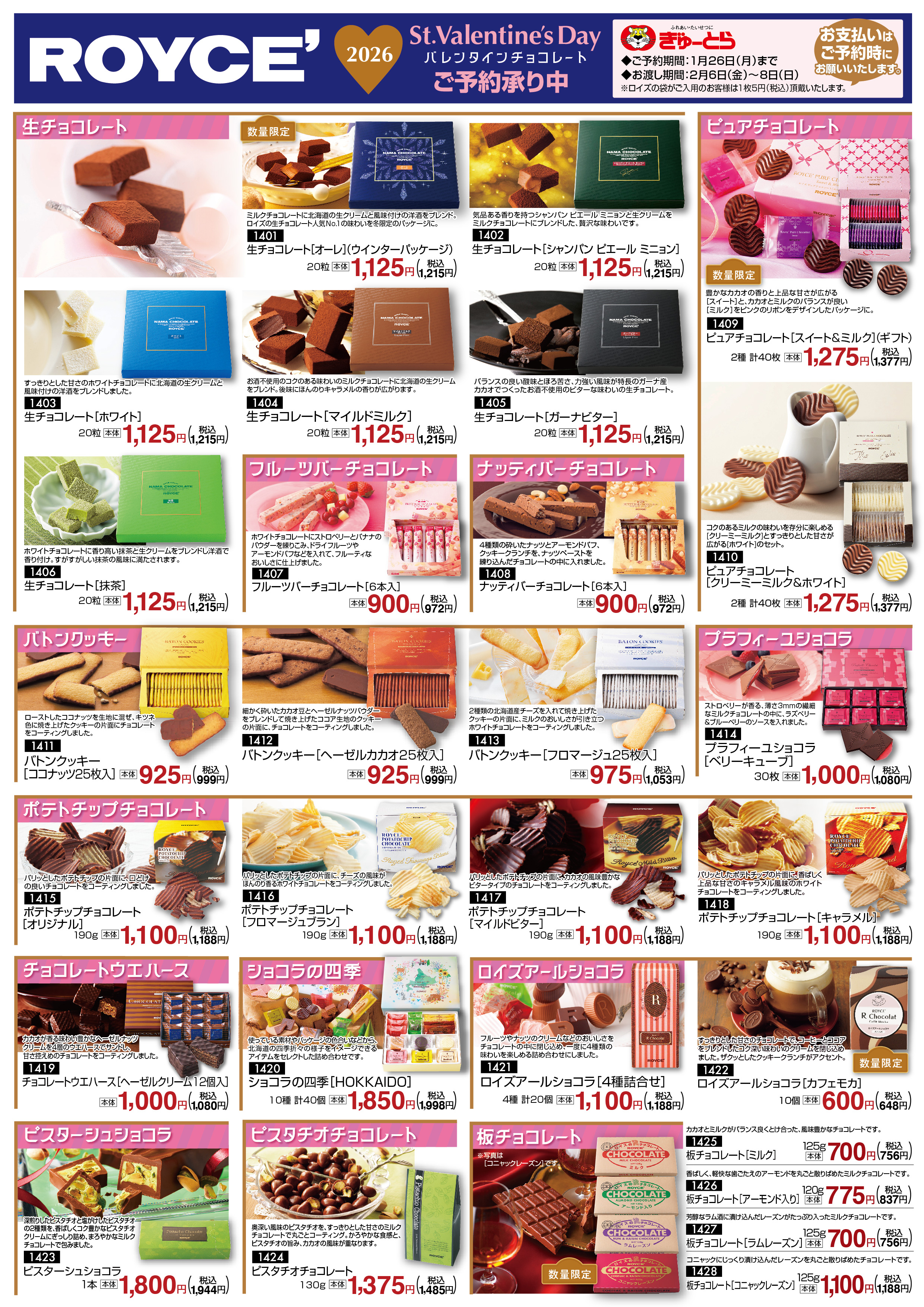 只今の期間、毎回大人気のチョコレート【ROYCE'】商品各種ご予約承り中です♪