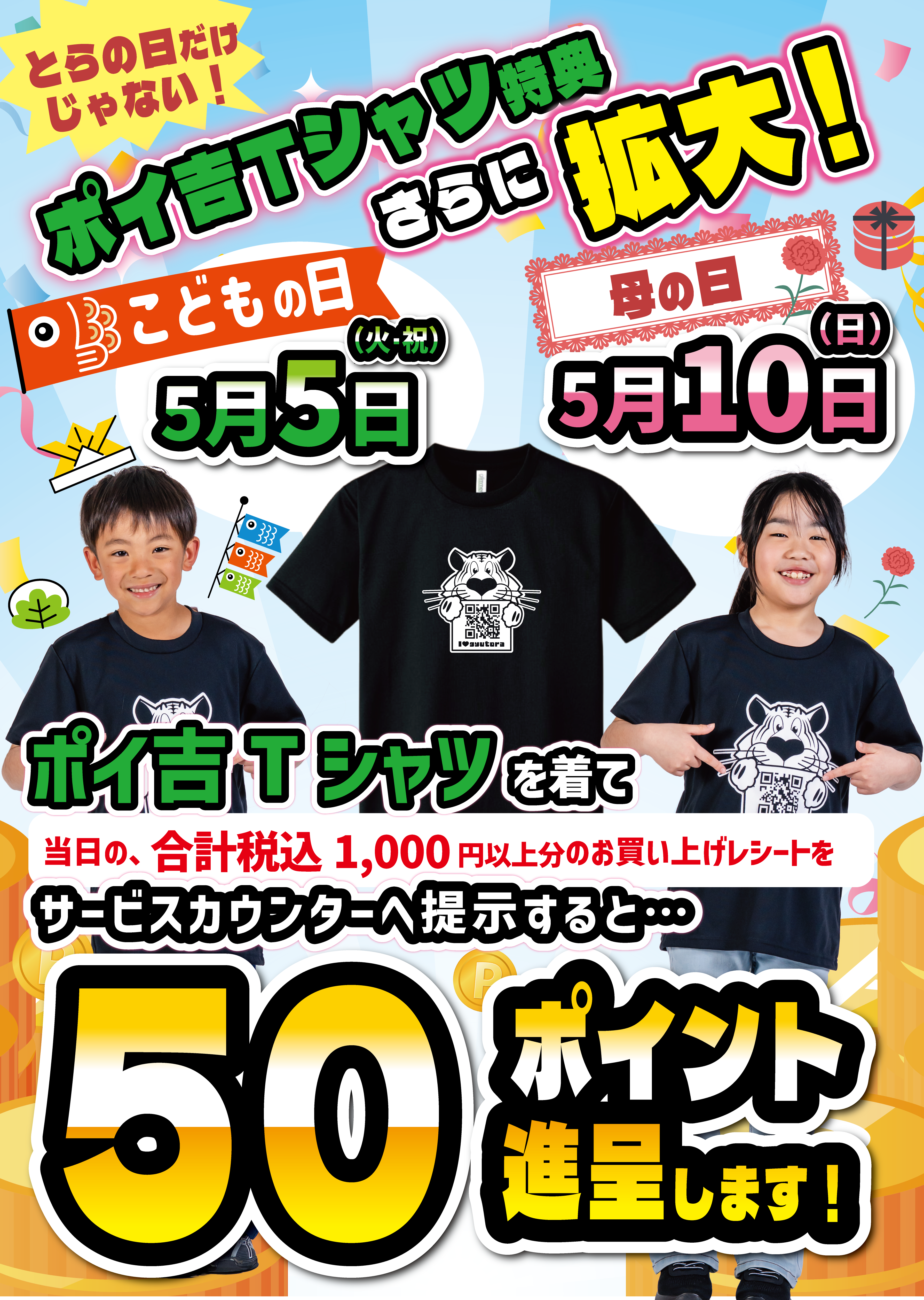 【5月5日(火)のこどもの日】・【5月10日(日)の母の日】にもポイ活DAY実施いたします!!