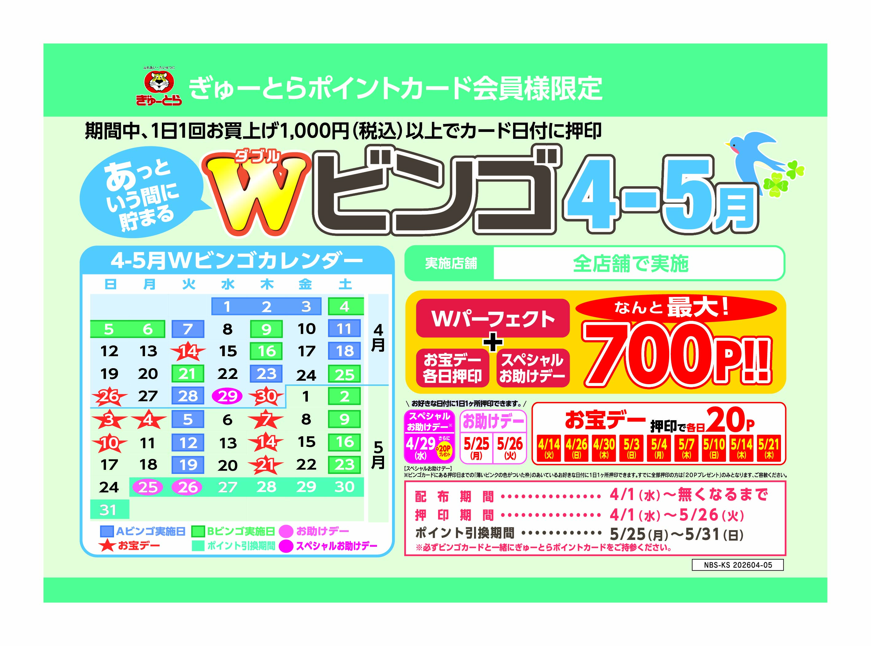 お知らせ 4月-5月Wビンゴ開催のご案内