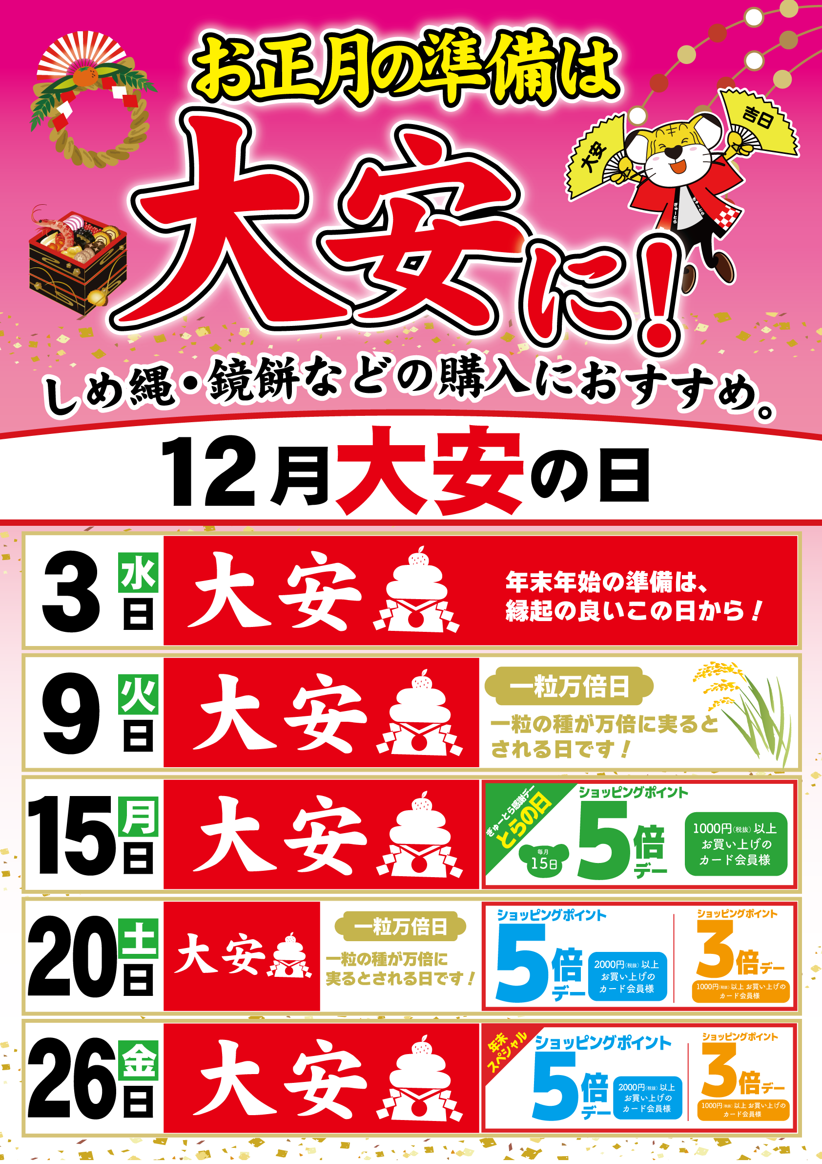 お知らせ お正月準備は大安がおすすめです♪