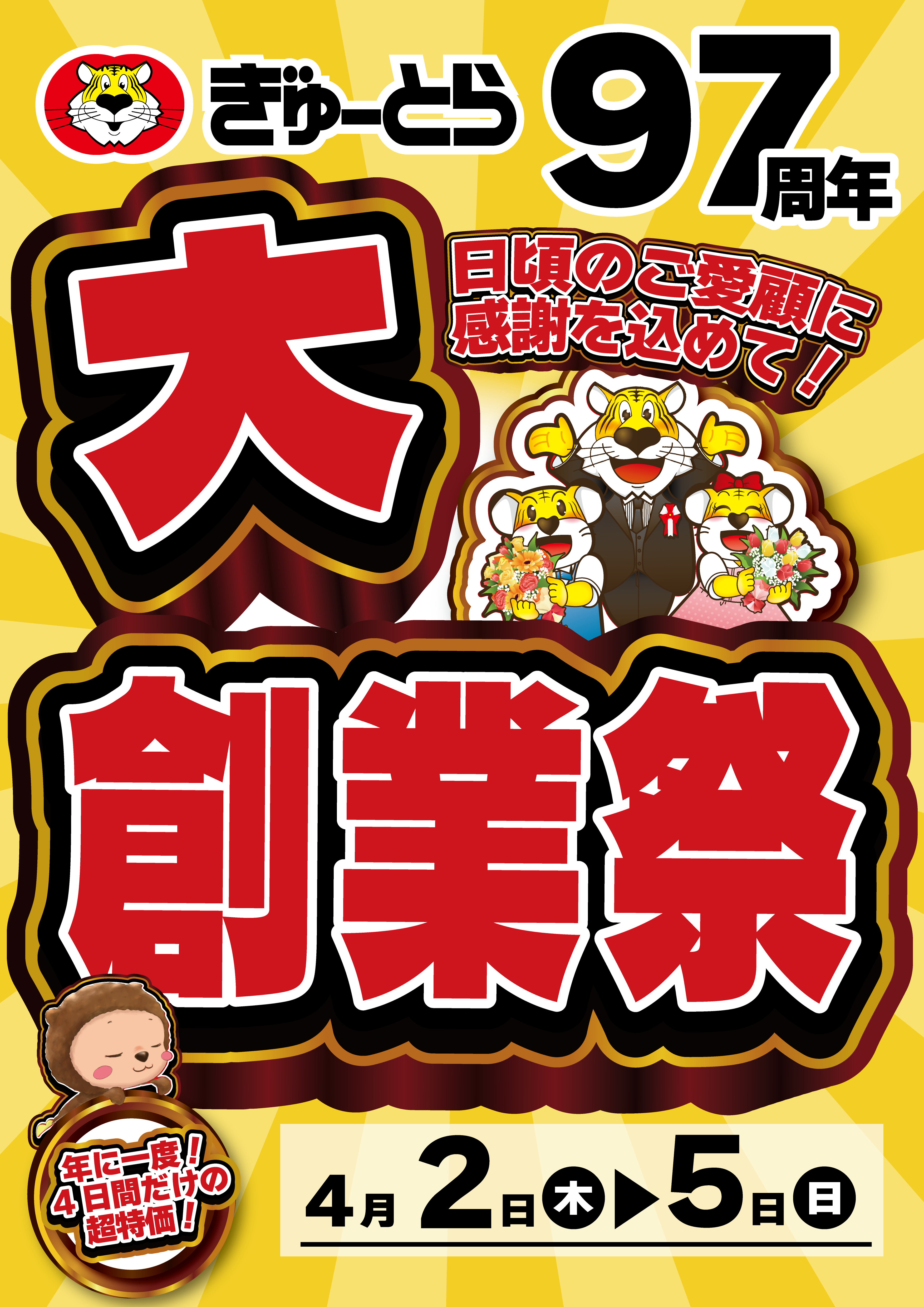 お陰様でぎゅーとらは今年で97周年を迎える事ができました。